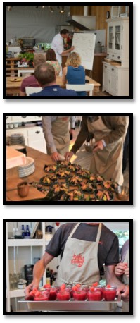 De lesdag start om 17.00 uur met de uitleg over de producten en ook komen de verschillende technieken aan bod. We bezoeken ook een bedrijf in de buurt om onze eigen ingrediënten op te halen en te ontdekken waar deze vandaan komen. Dan gaan we de keuken in. Tijdens de kooklessen maak je in tweetallen een voor-, hoofd- en nagerecht. We bekijken elkaars bordopmaak en proeven de verschillende gerechten. In de afsluitende ‘finale’ koken we gezamenlijk als een keukenbrigade uit een restaurant voor uw gasten.